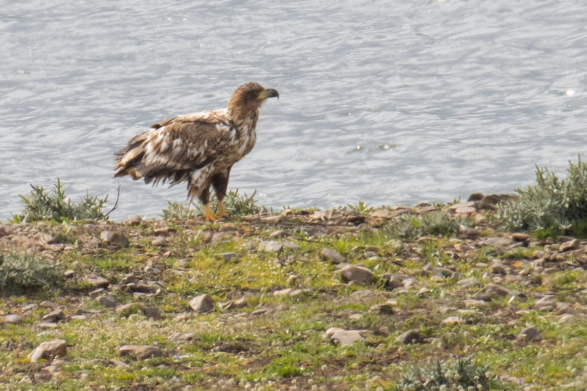 Gagadan dolayı akkuyruklu kartal diye düşündüm. Ama renkleri ve desenleri biraz değişik geldi bana. Belki biraz önce yağan yağmurdan dolayı da tüyler birbirine girmiş olabilir. :) Sizce nedir?