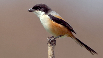 Boyu 23-27 cm, ağırlıkları 50-53 gr'dır. Koyu gri baş ve mantoya, kuyruk örtüsü ile sırt arasındaki alan kestane sahiptir. Kanatlar, uçuşta göze çarpan küçük beyaz birincil yamalar ile siyahımsıdır. Uzun kuyruk dereceli tonlarda siyahtır. Dış kuyruk tüyleri pas rengindedir. Alt kuyruk grimsidir. Alt kısımlar beyazımsı, göğüs kenarları ve yanları kestane rengindedir. Baş gri, alın, gözler ve kulak örtülerini kaplayan siyah maskelidir. Güçlü, kancalı gaga siyahımsıdır. Gözler kahverengi. Bacaklar ve ayaklar gridir. Her iki cinsiyet de benzerdir. Yavru, çizgili vücut kenarları ile yetişkinlerden daha mattır. Popülasyonların çoğu yerleşiktir ve sadece kuzey kuşları üreme mevsiminden sonra daha ılıman bölgelere göç eder. Genellikle tek başına görülürler. Esas olarak yerde yakalanan böceklerle beslenirler. Ancak uçarken avlarını yakalayabilirler. Bazen diğer kuşların avlarını çalmak için korsanlık yapabilirler. Genellikle bazı avlarını diken gibi keskin bir noktaya saplar. Ardından gagasıyla avını parçalar ve yer. Oldukça bölgeseldir ve yuvalama alanını şiddetle savunur. Kendi türünden kuşlara karşı çok saldırgan olabilir. Flört döneminde erkek rakiplerini kovalar ve çok kavgacı ve gürültülüdür. Tek eşlidirler. Üreme mevsimi coğrafi bölgelere göre değişir. Dalgalı bir uçuşa sahiptir. Ancak avlanırken düz ve sabit hareketler sergilerler. Yuvası ağaçta veya dikenli çalılarda bulunur. Yerden yaklaşık 3 ila 12 metre yükseklikte yer alabilir. Yuva, dallar, kökler ve gövdelerden yapılmış hacimli, derin bir kap şeklindedir. İnce çim ve kökçüklerle kaplıdır. Yuva her iki yetişkin tarafından inşa edilir. Dişi 4 ila 6 yumurta bırakır. Kuluçka dişi tarafından yaklaşık 13 ila 16 gün sürer. Yavrular yumurtadan çıktıktan yaklaşık 14 ila 19 gün sonra tüylenir. Yuvası guguk kuşu tarafından parazitlenir.