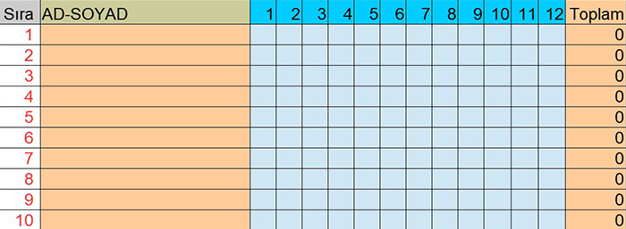 | Ad Soyad | Kertik Sayısı | ||||||